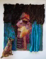 "Veiled Silence" is a sophisticated fiber art piece and a direct conceptual continuation of the oil painting "Burning Gaze". While the painting captured the initial emotional impulse, this textile work materializes that vision through a complex process of layering and combined stitching. I use both free-motion machine sewing and intricate hand embroidery to join diverse textures: rabbit fur, a vintage linen bedspread, and fragments of my own handmade sculptural felt. This dialogue between machine precision and the organic touch of the hand reflects the multi-layered nature of human existence, turning the initial "burning" emotion into a protective, tactile space.